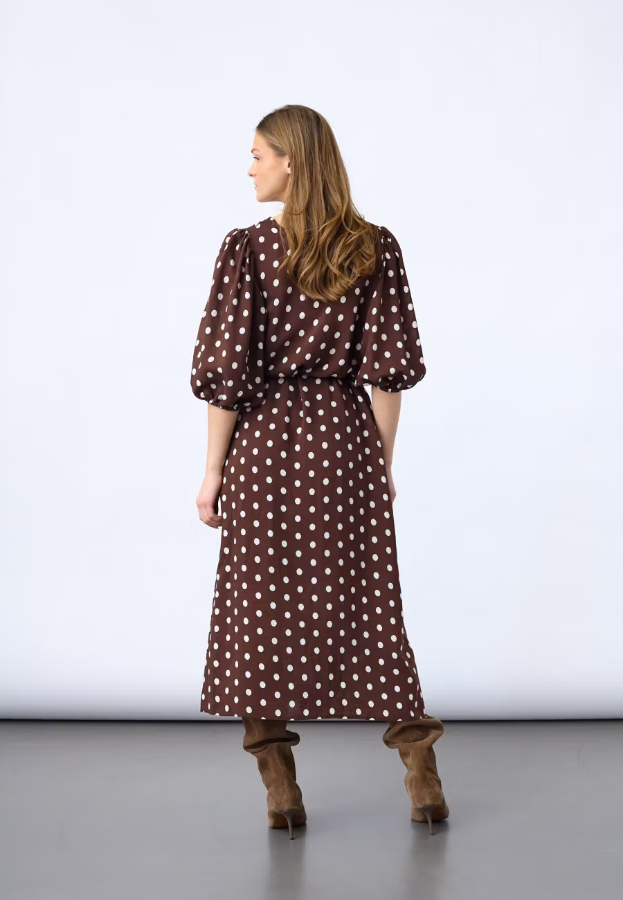 Ventia dress 799:- Storlek XS S M L XL I lager. Lägg i korgen Lagersaldo: Artikelnummer: 2277 Leverantör: Sisters Point Dela Information Recensioner VENTIA-V.DR8 er en maxikjole med et tidløst prikket mønster. Kjolen har en flatterende V-udskæring, voluminøse pufærmer med elastikkant og et bindebånd i taljen, der fremhæver silhuetten. Modellen har en str. S på. 55% Viscose 45% Nylon