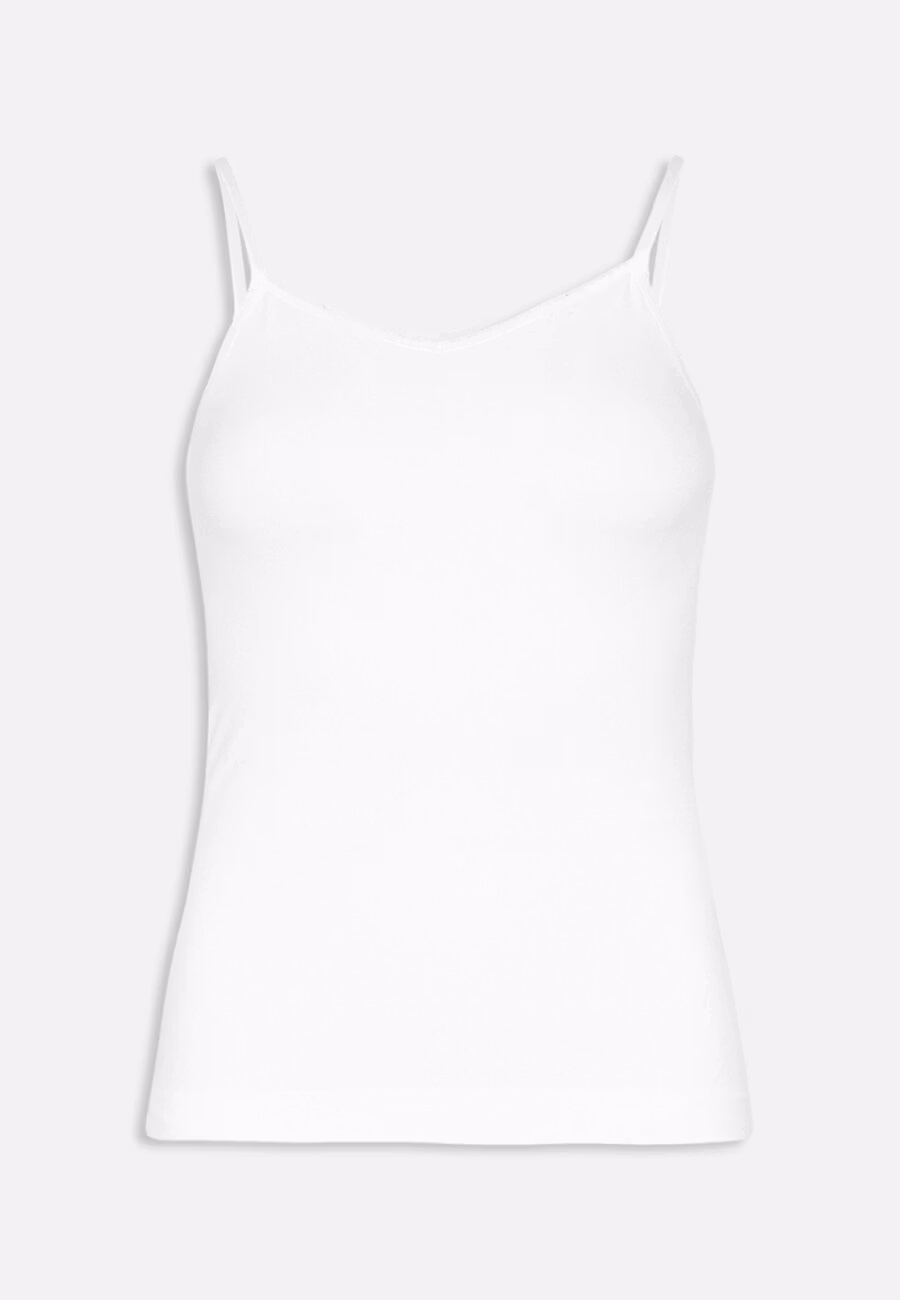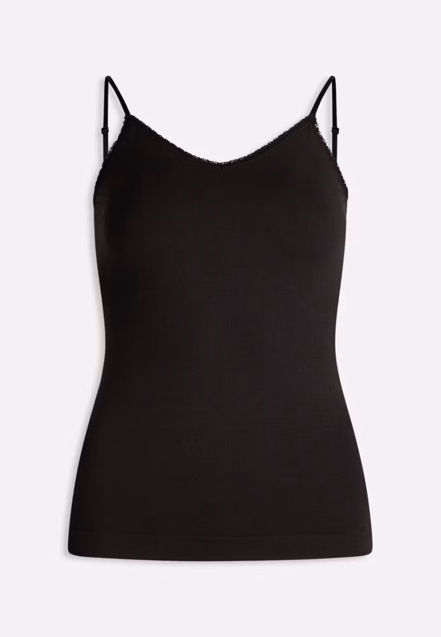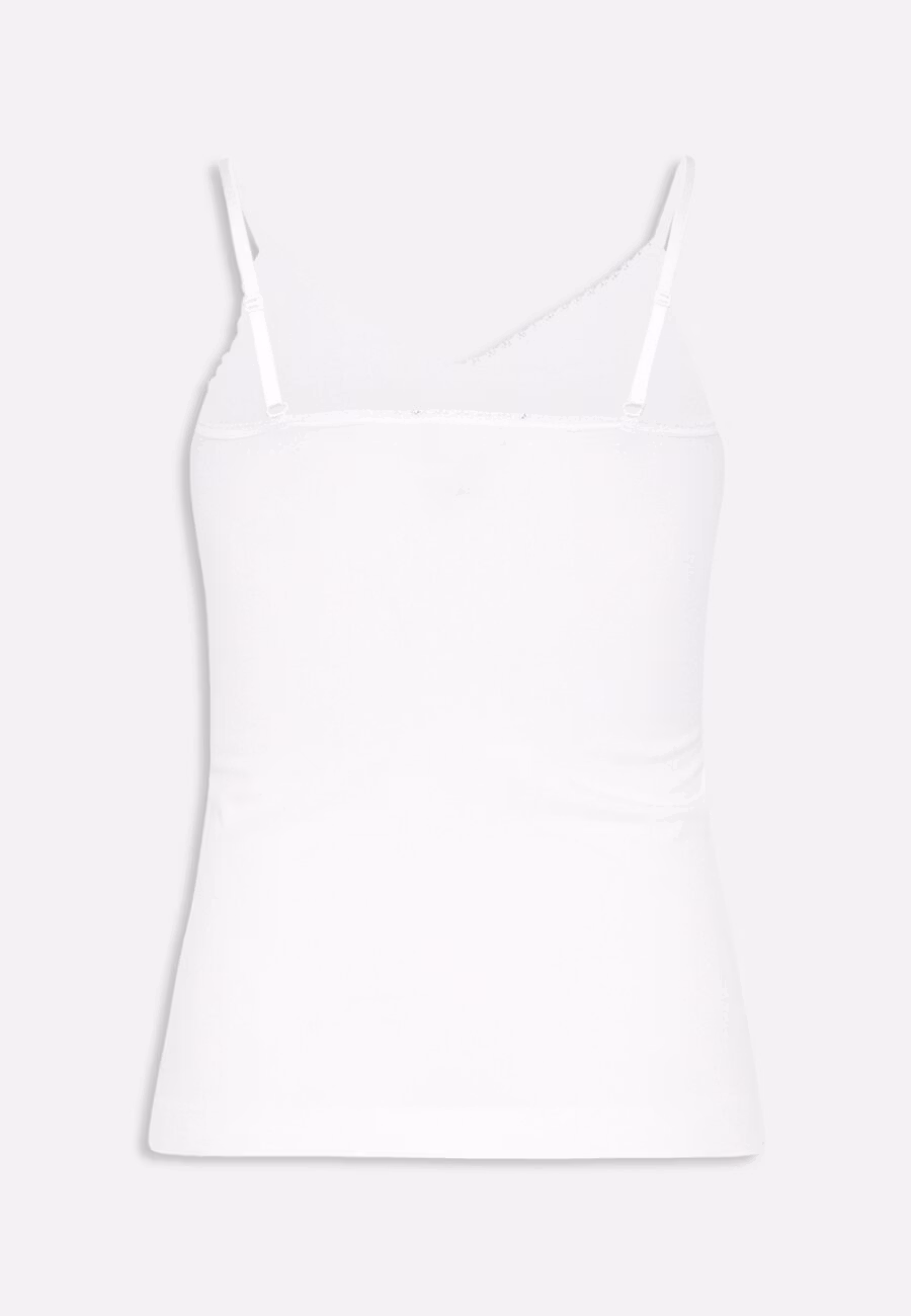 RENT-ST er en ensfarvet top med justerbare stropper og en feminin blondekant.