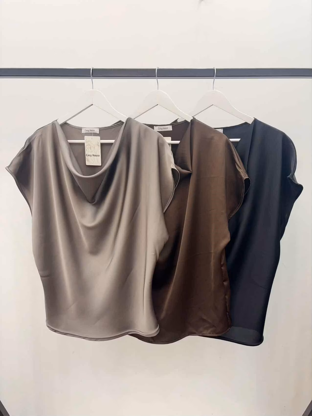 Nellie topp 499:- Färg Svart Taupe I lager. Lägg i korgen Lagersaldo: Artikelnummer: 2129 Leverantör: Cosy House Dela Information Recensioner Glansig festlig topp i onesize