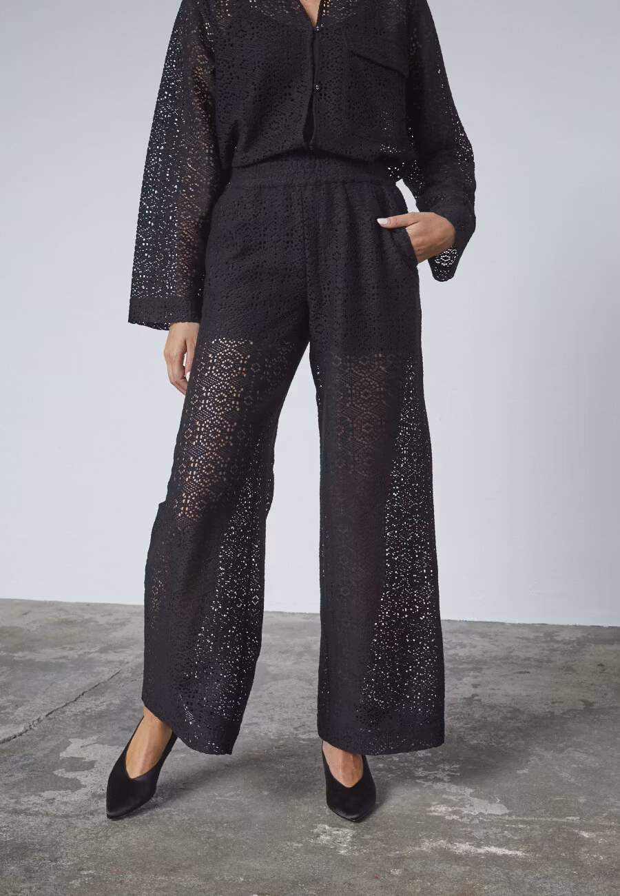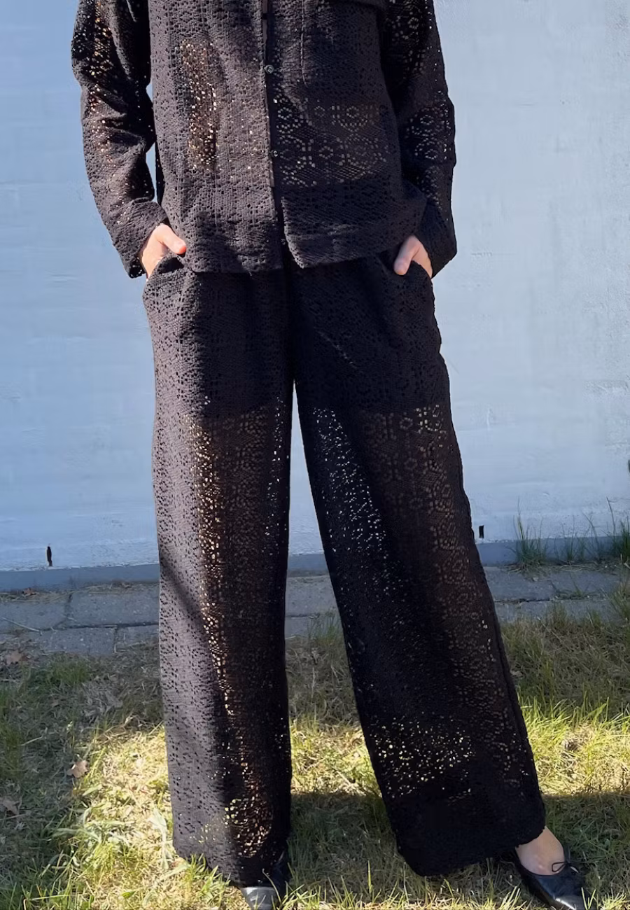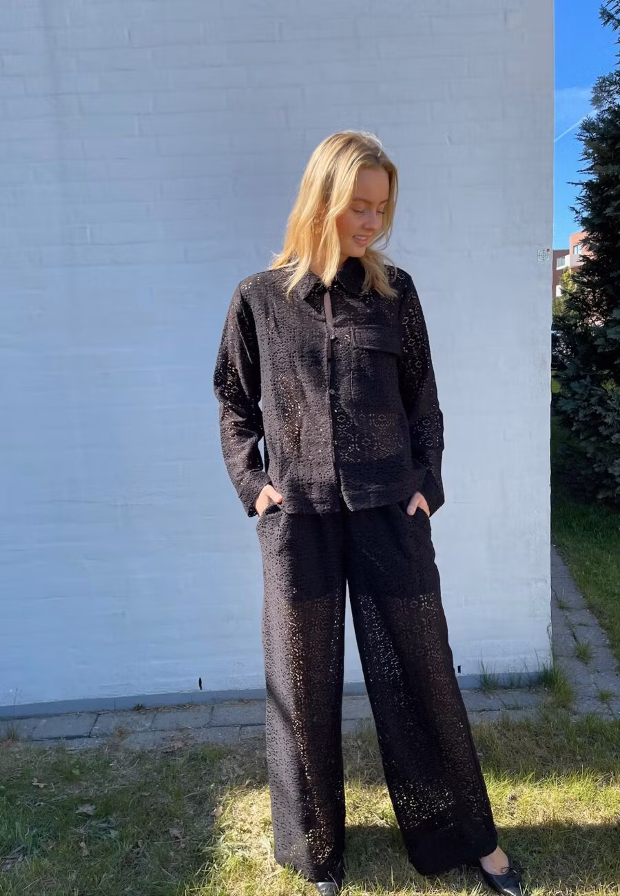 ELSIA-PA är ett par luftiga och lätta byxor i ett fint, vävt mönster. Shortsen har en bekväm resår i midjan och en lös passform. De har påsydda undershorts. Modellen bär storlek S.