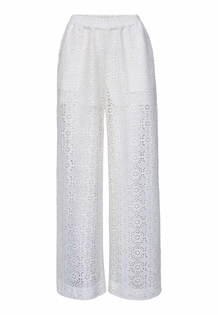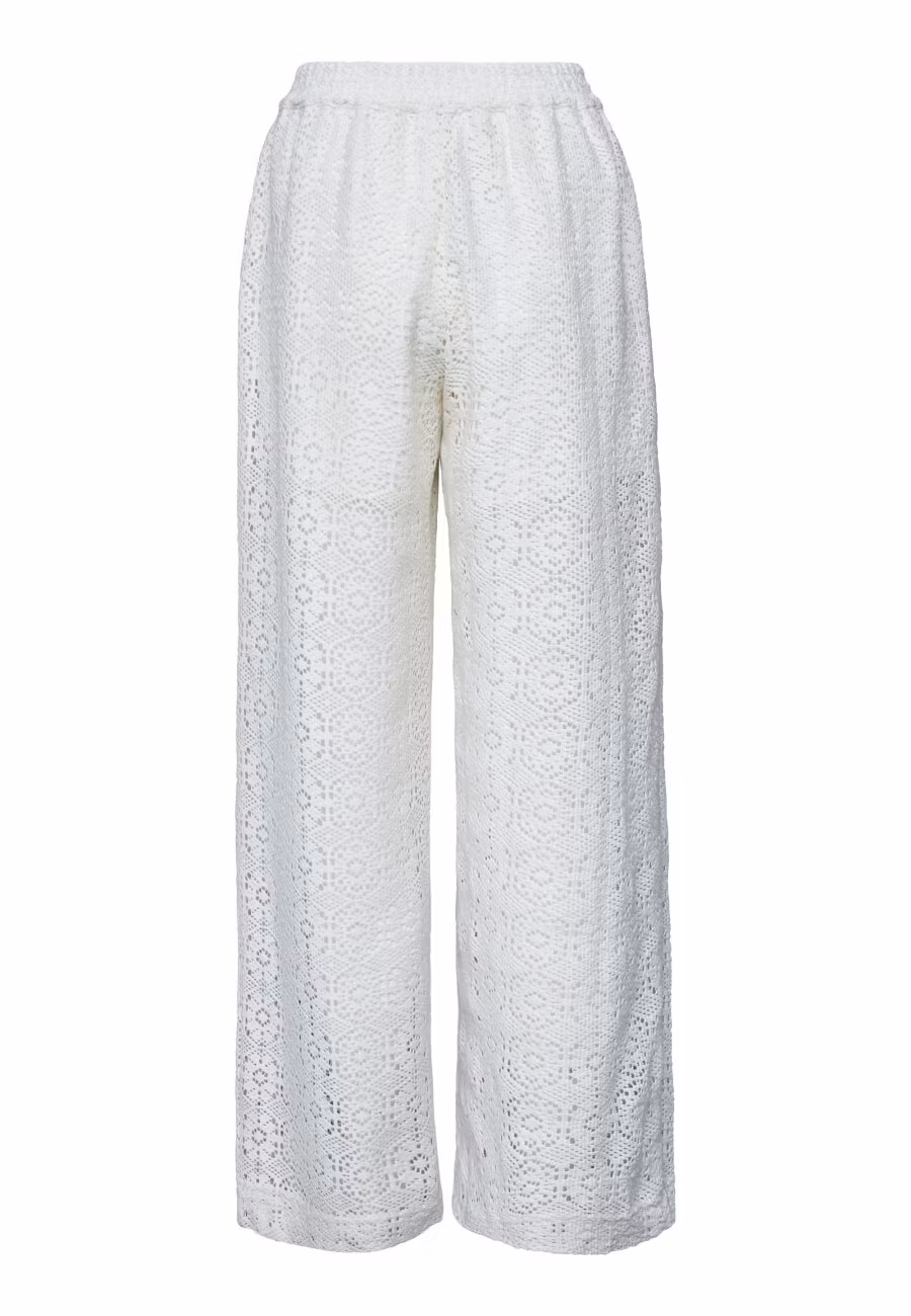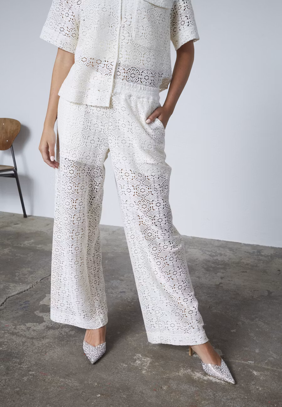 ELSIA-PA är ett par luftiga och lätta byxor i ett fint, vävt mönster. Shortsen har en bekväm resår i midjan och en lös passform. De har påsydda undershorts. Modellen bär storlek S.