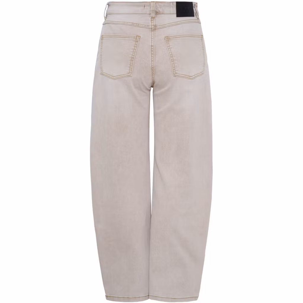 Bukserne har høj talje, lige ben og klassisk fem‑lomme design, som giver et tidløst og alsidigt udtryk – perfekte til både hverdag og pænere brug.